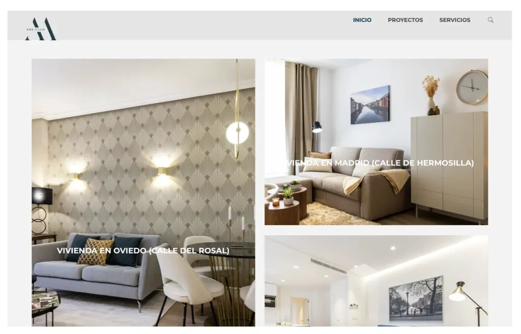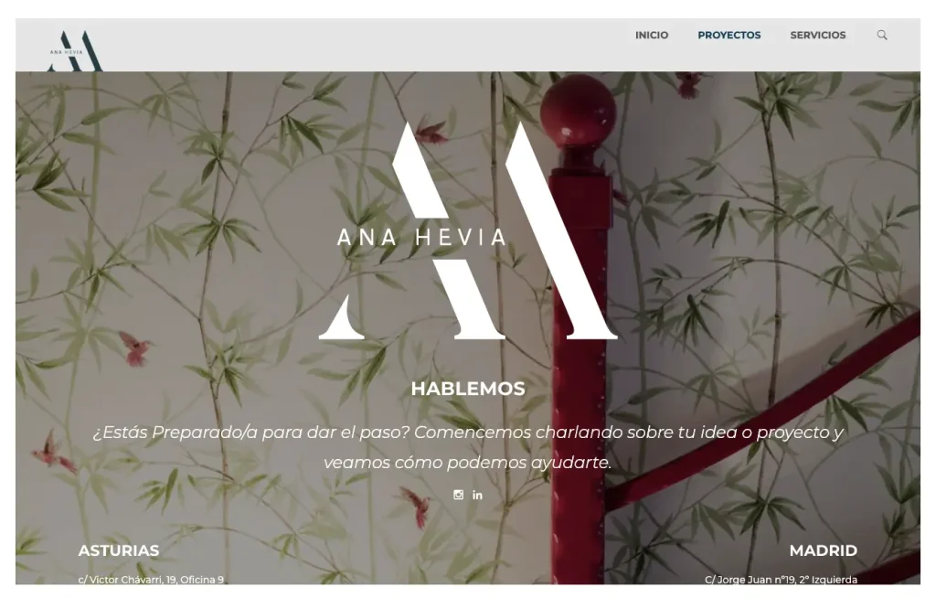 Una web elegante y dinámica para reflejar el estilo y profesionalidad de Ana Hevia, interiorista con presencia en Oviedo y Madrid.